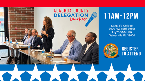 We are delighted to host a luncheon at Santa Fe College for our Alachua County Delegation—Senators Jennifer Bradley and Stan McClain and Representatives Yvonne Hinson, Chad Johnson and Chuck Brannan—on Monday, October 20th, before the public Legislative Hearing at 1:00. The luncheon will start at 11:00 and end at 12:00, and will be an excellent opportunity to engage with them on issues of importance to you as we charge ahead to 2026. A box lunch will be provided, and registration is required to attend this members-only event.
